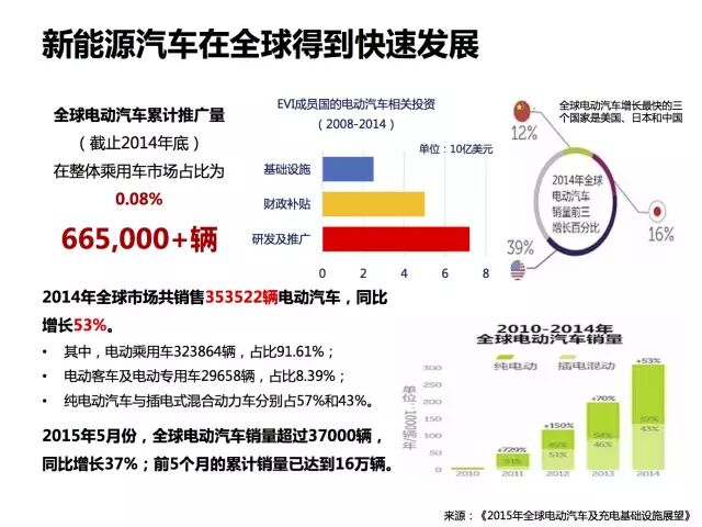 中国国民经济的飞速发展,促进居民汽车保有量的增长。据国家统计局数据, 2005-2014年年均增长高达15.61%。然而汽车数量的增长带来了石油能源减少、环境污染、城市空间拥挤等问题,于是新能源汽车得到飞速发展。2014年全球市场共销售353522辆电动汽车,同比增长53%。据工信部统计,2015年1-6月,中国新能源汽车累计生产7.85万辆,同比增长3倍。新能源汽车市场拥有巨大的前景,这一点毋庸置疑。本文将通过上下两篇,从市场分析、发展趋势、产业研究、案例分析四个方面,进行新能源汽车市场及生态分析。