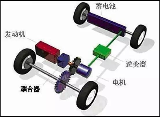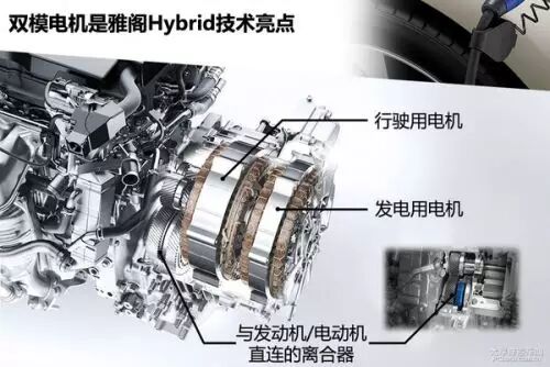 混合动力:电动机和发动机同时驱动,此时发动机与电动机啮合,带动变速箱,驱动汽车行驶,电控系统会根据驾驶的情况来分配动力电池和发动机的输出。