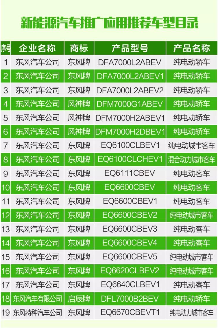 近日,国家工信部发布**的《新能源汽车推广应用推荐车型目录》(2016年第2批),东风公司19款车入选。来看看TA们是哪些车型吧!
